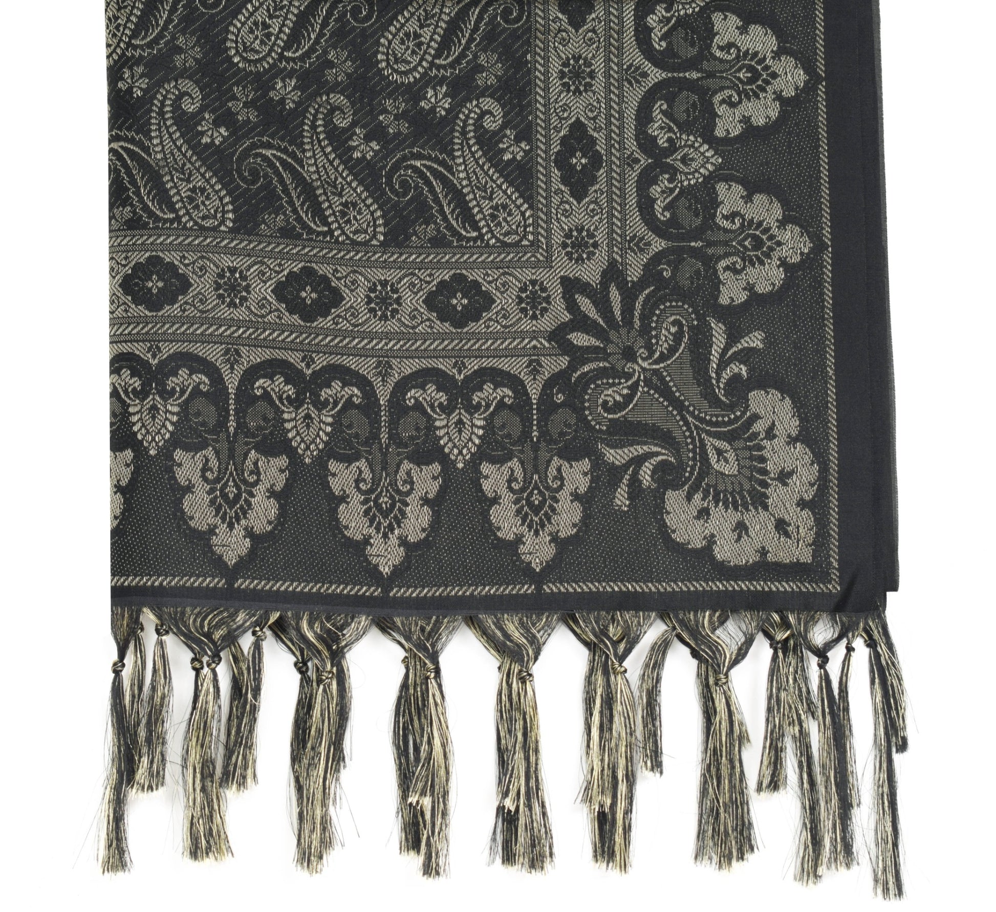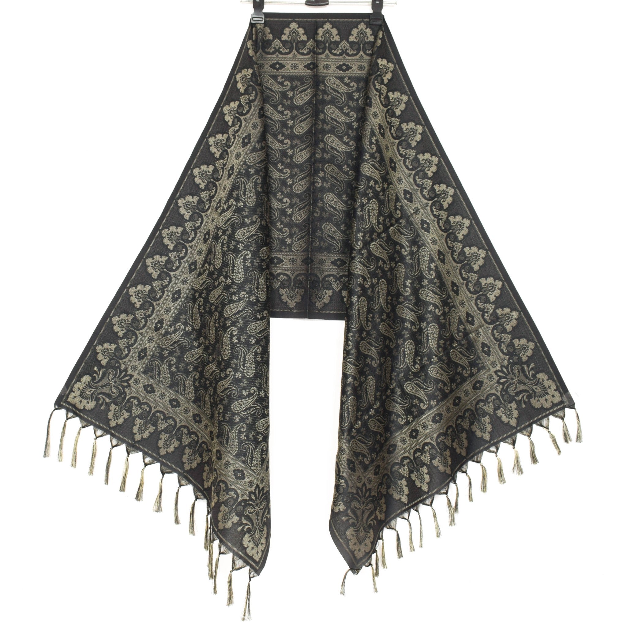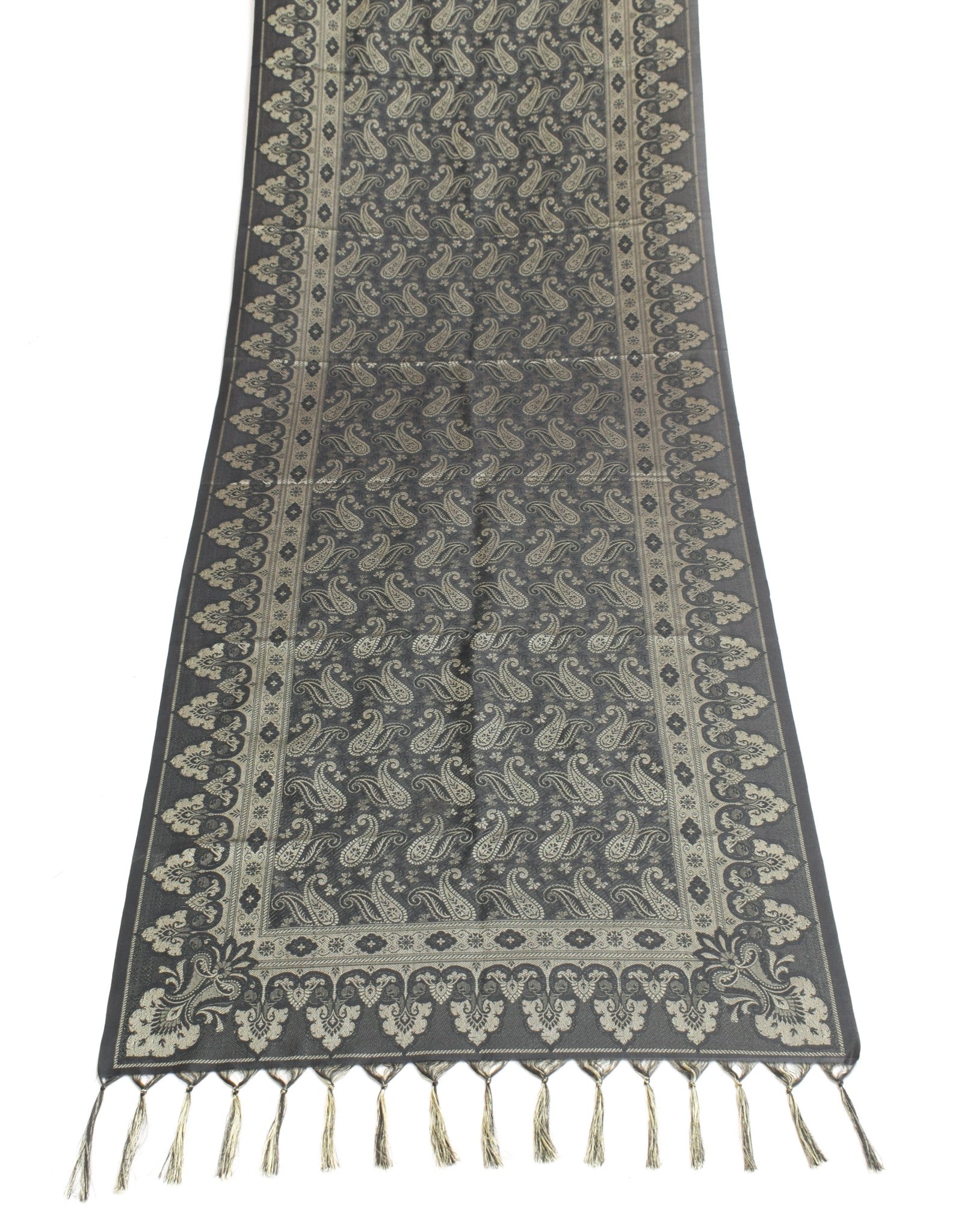 Long Stole Indian Art Silk Woven Banarasi Soft Black Dupatta