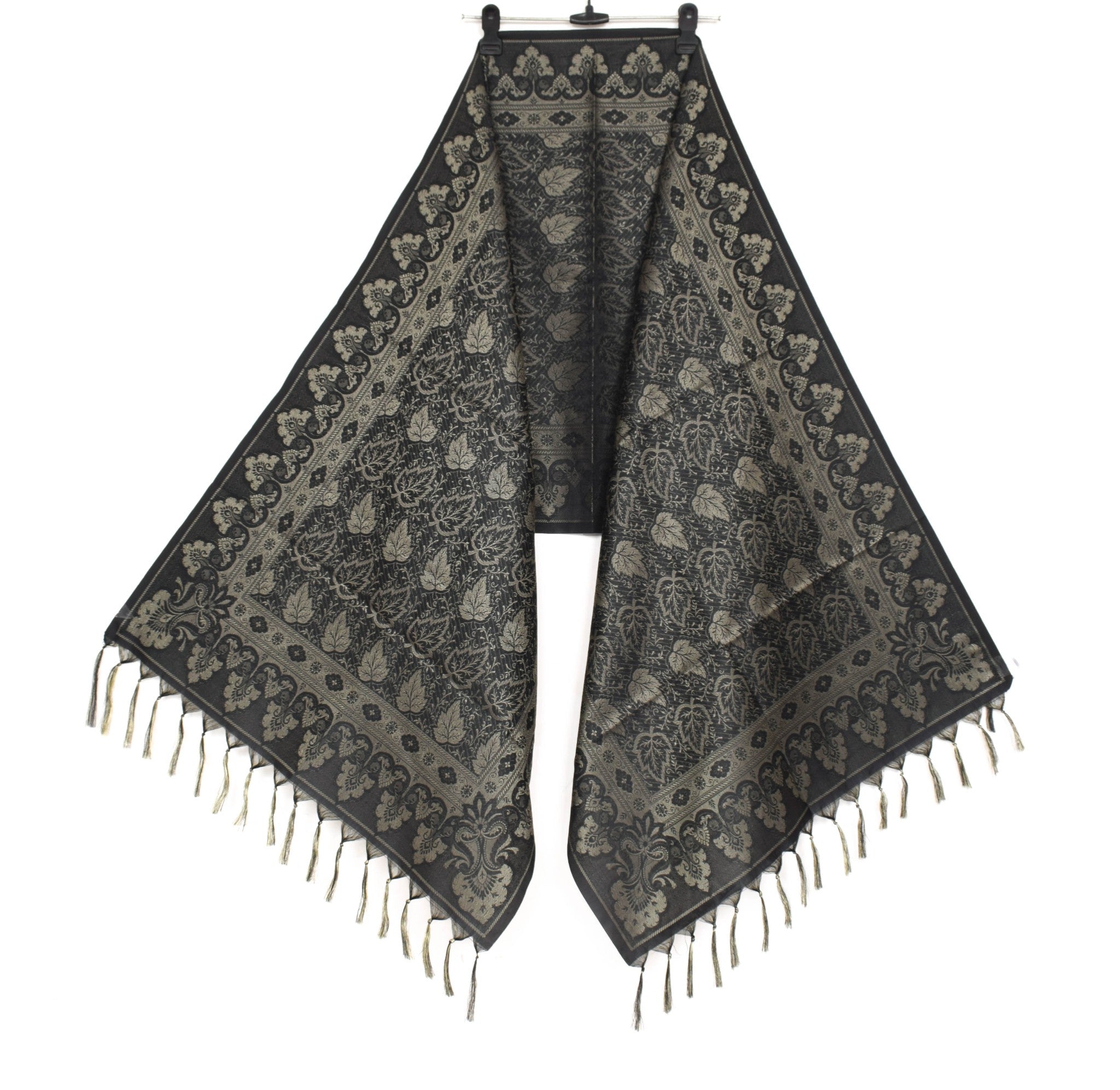 Long Stole Indian Art Silk Woven Banarasi Soft Dupatta Black