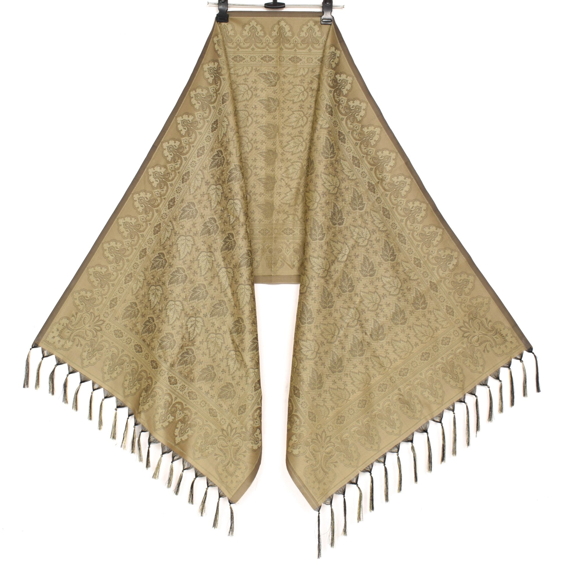 Long Stole Indian Art Silk Woven Banarasi Soft Dupatta Cream