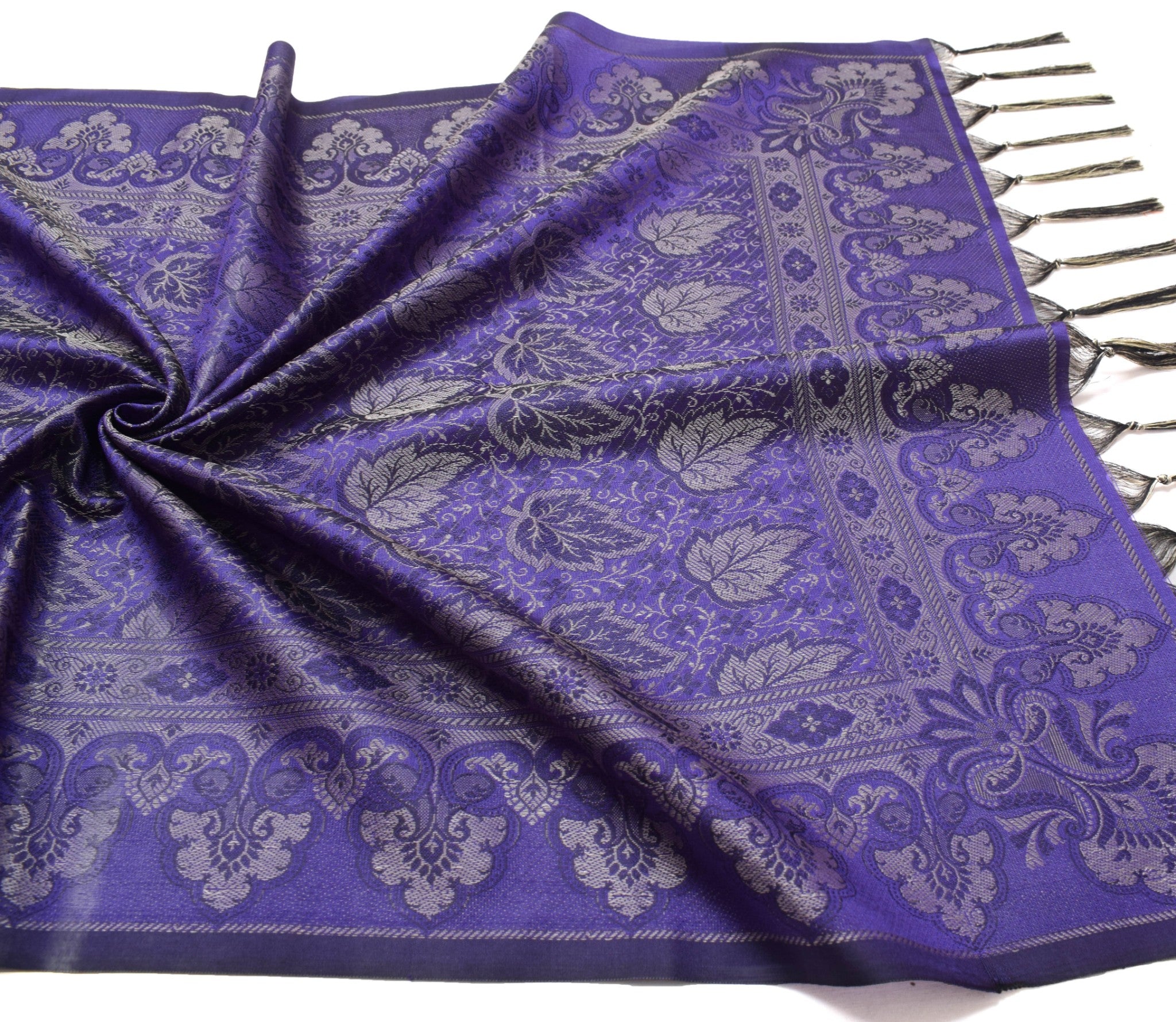 Long Stole Indian Art Silk Woven Banarasi Soft Dupatta Violet