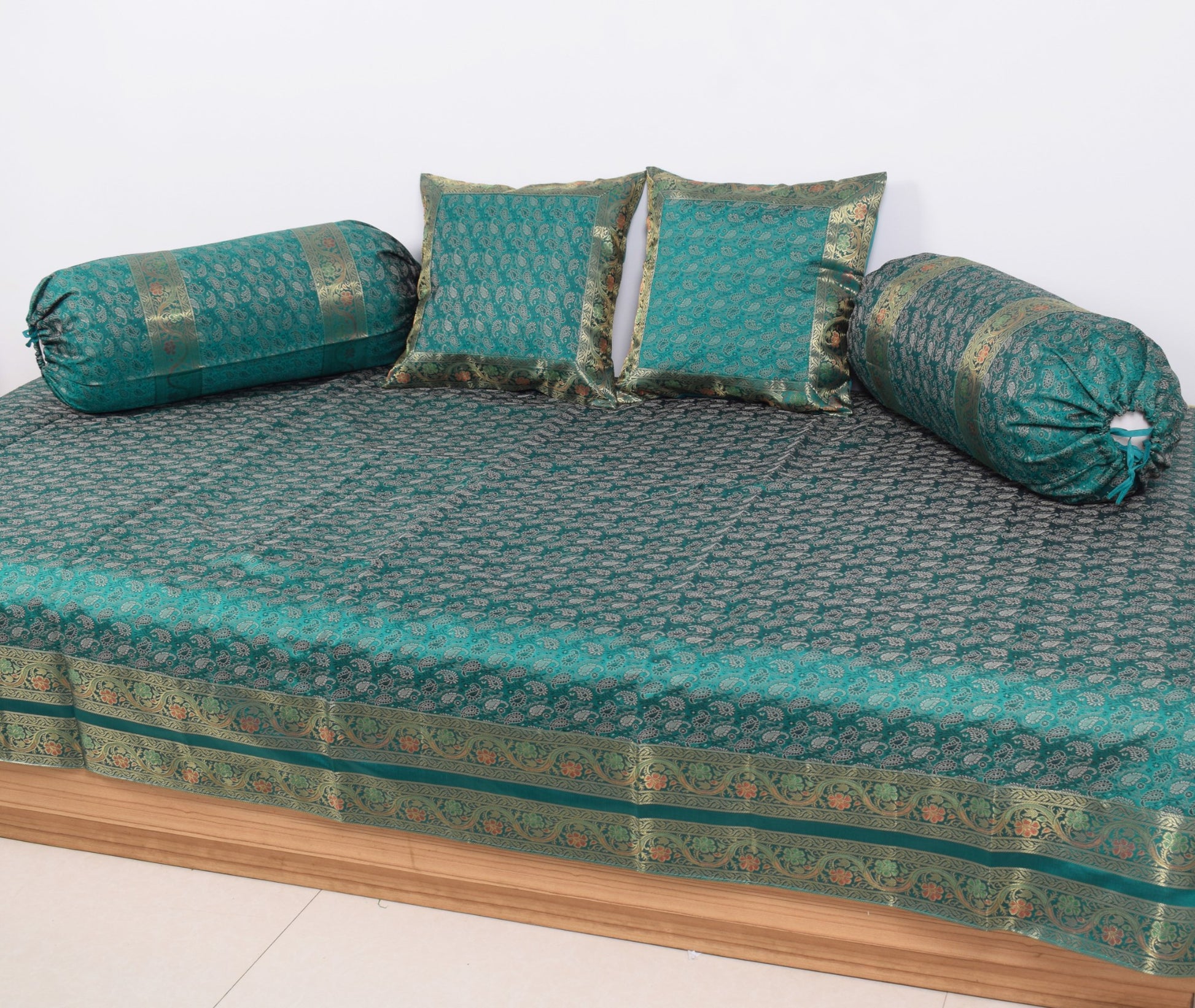 Teal Green – Banarasi Diwan Set Silk & Zari Brocade Cushion and Bolster Cover