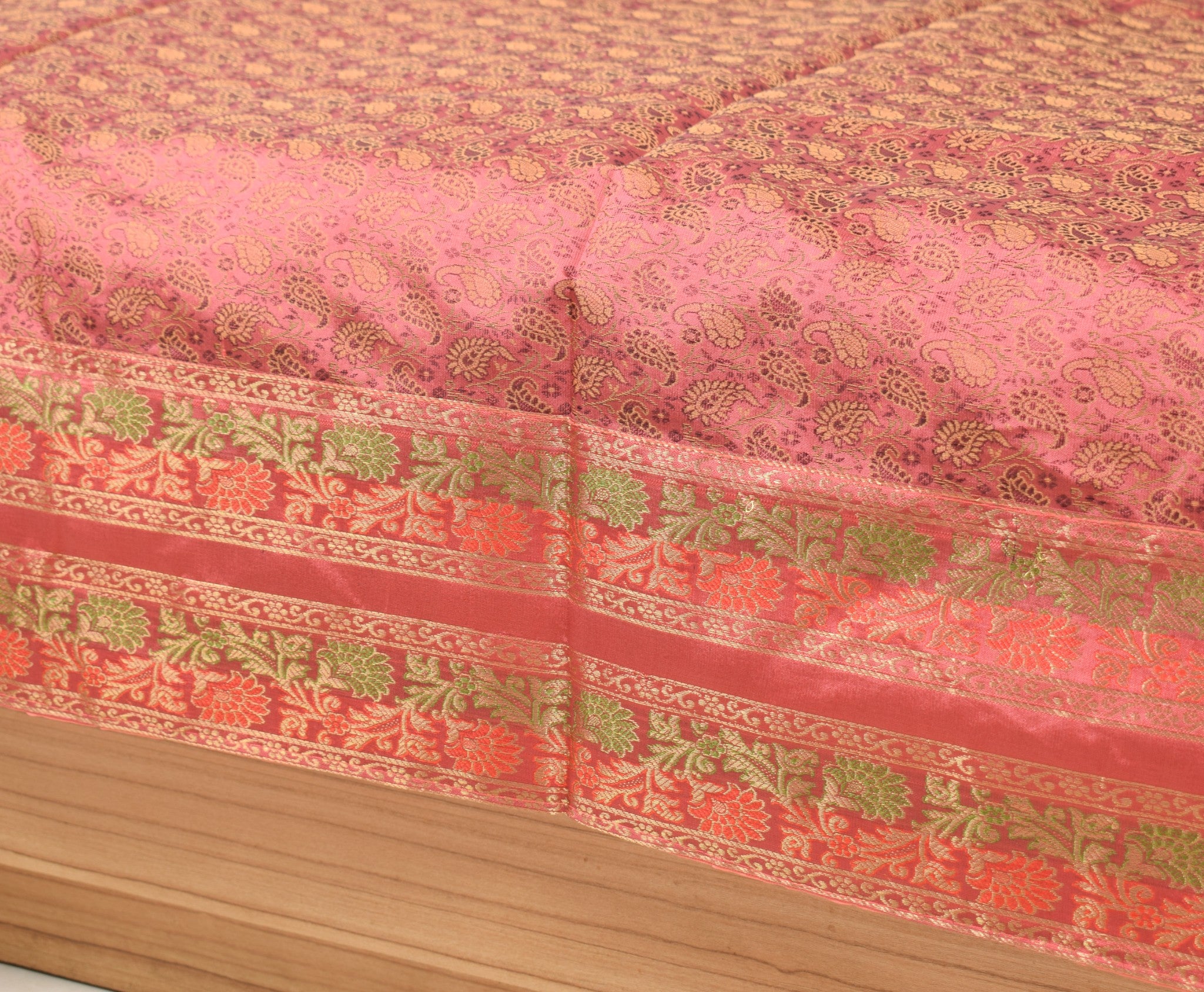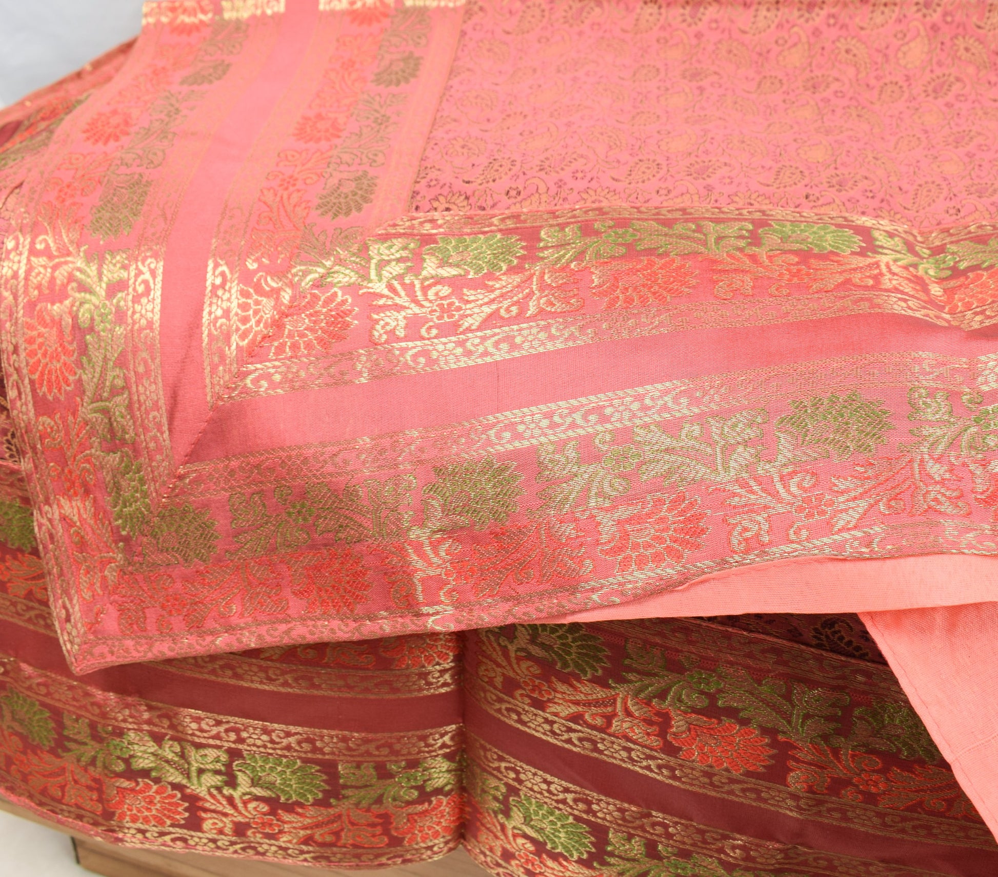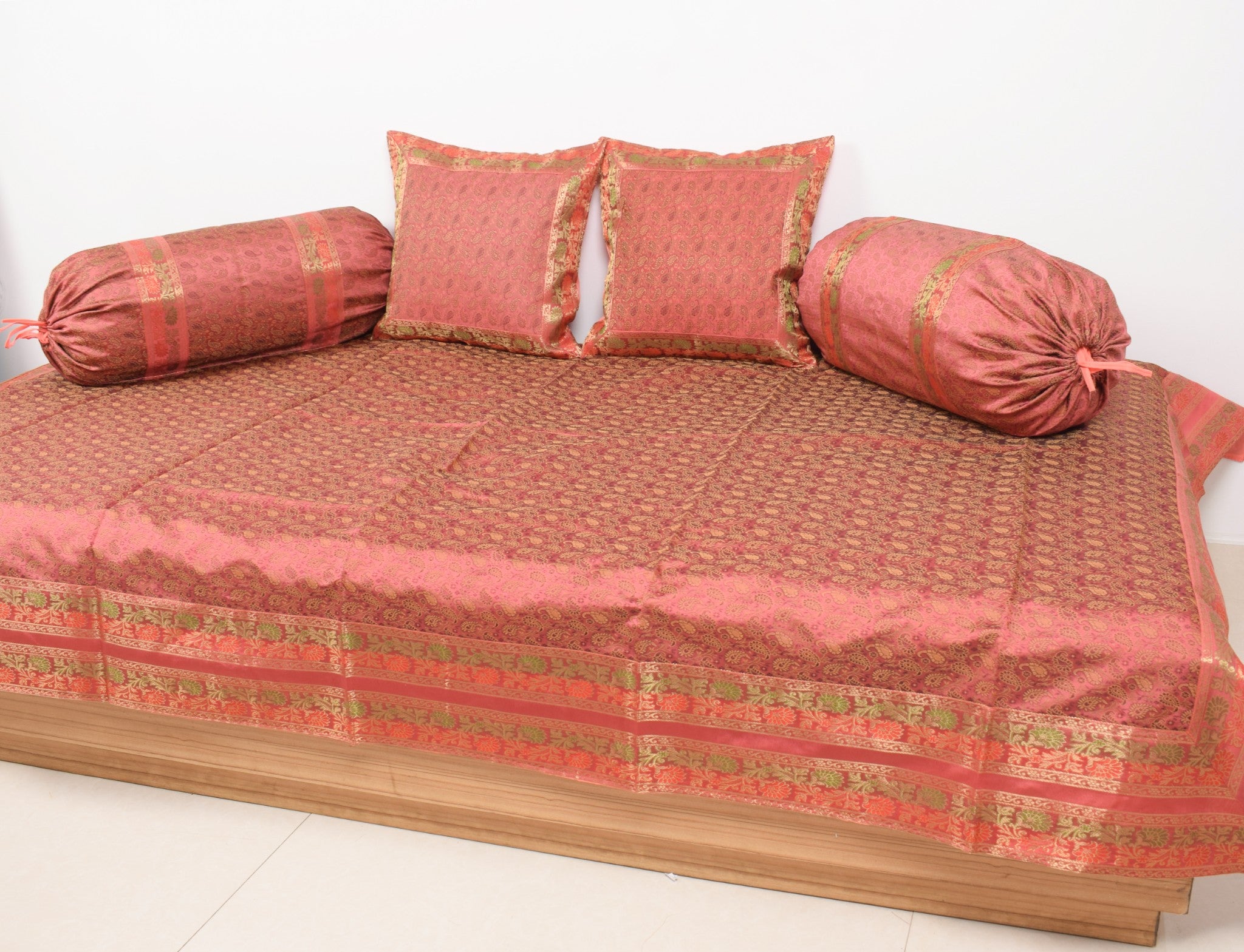 Traditional Banarasi Diwan Set Dark Peach Silk with Zari Brocade Cushion Bolster