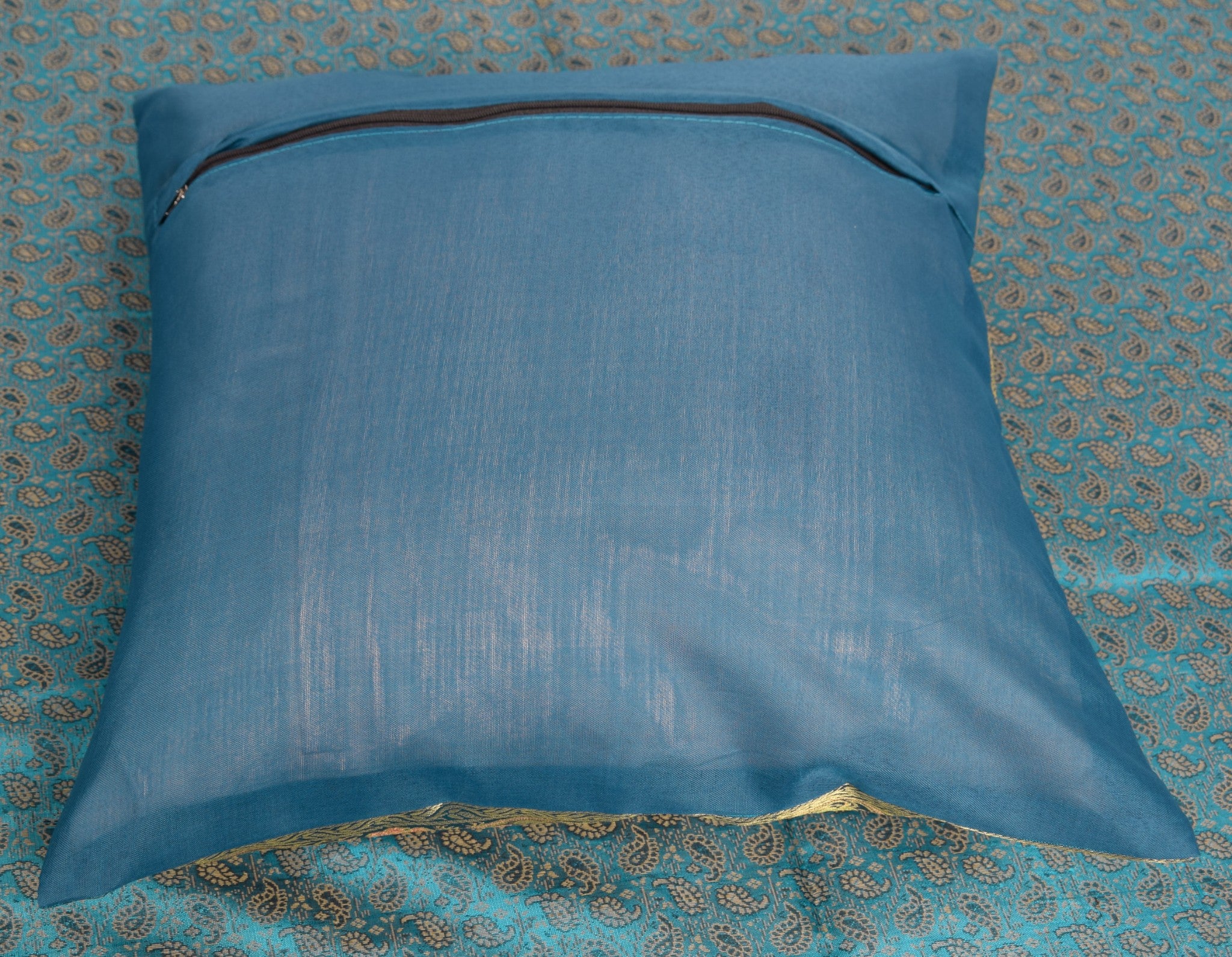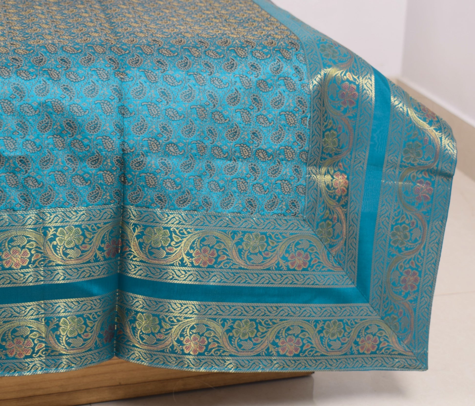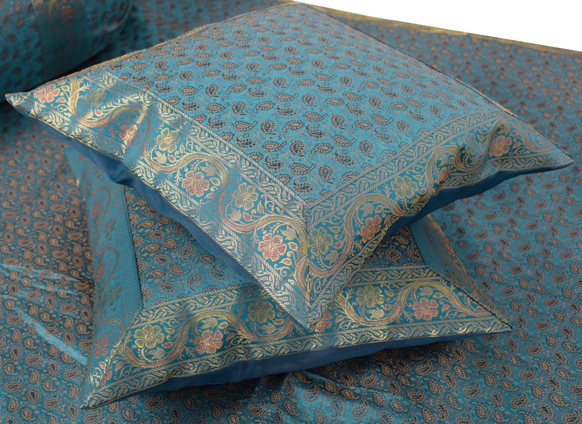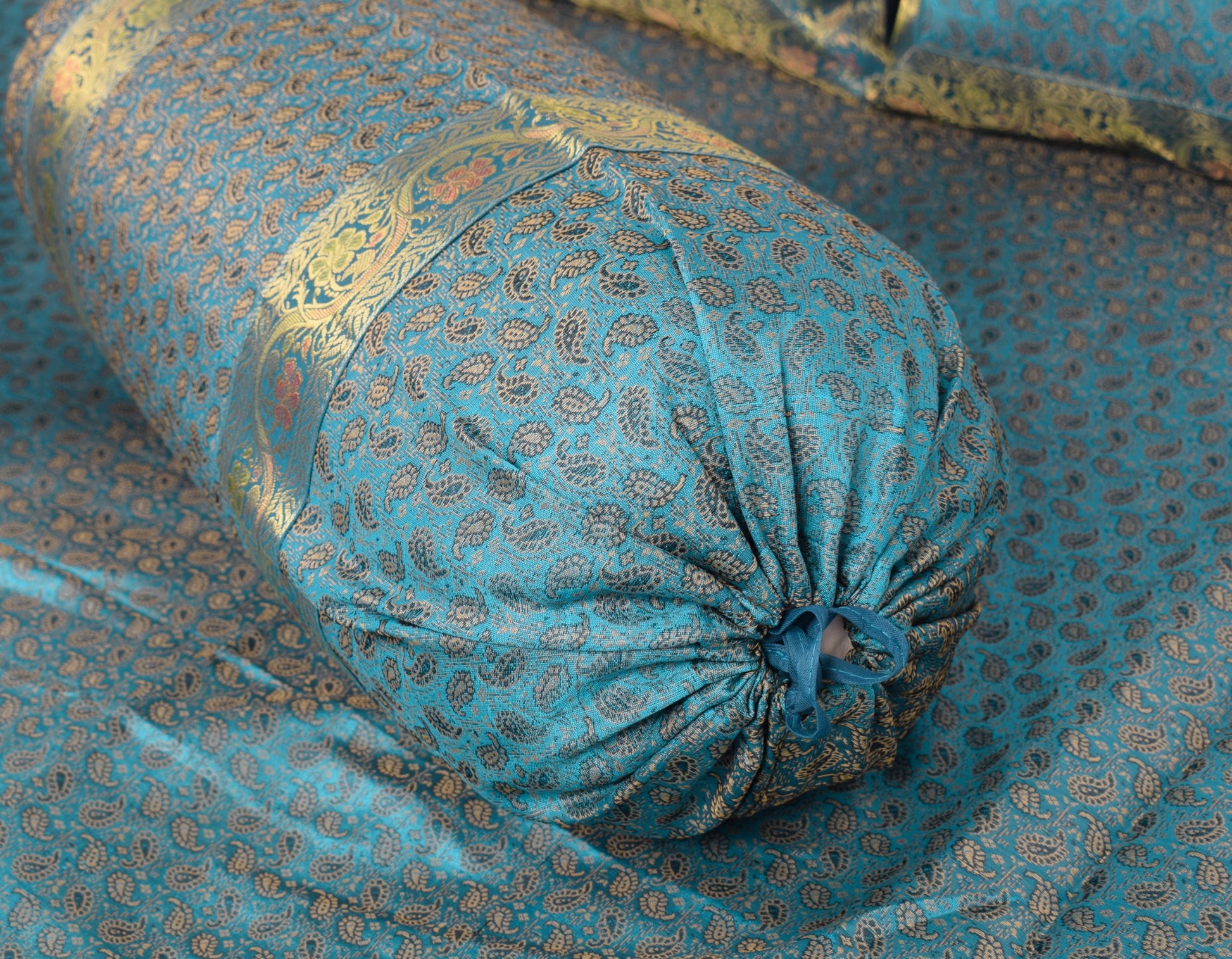 Turquoise Blue Banarasi Diwan Set – Silk Zari Brocade Cushion & Bolster Covers