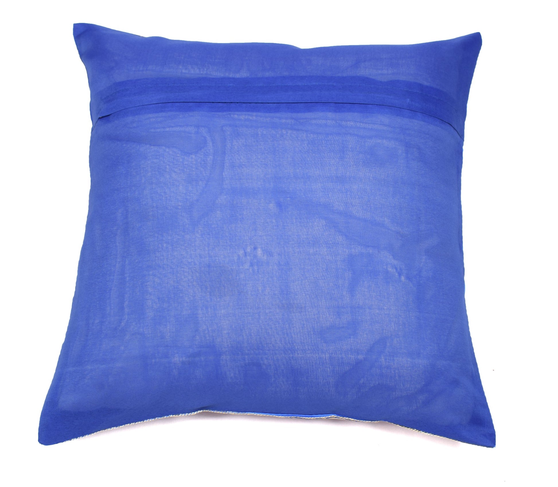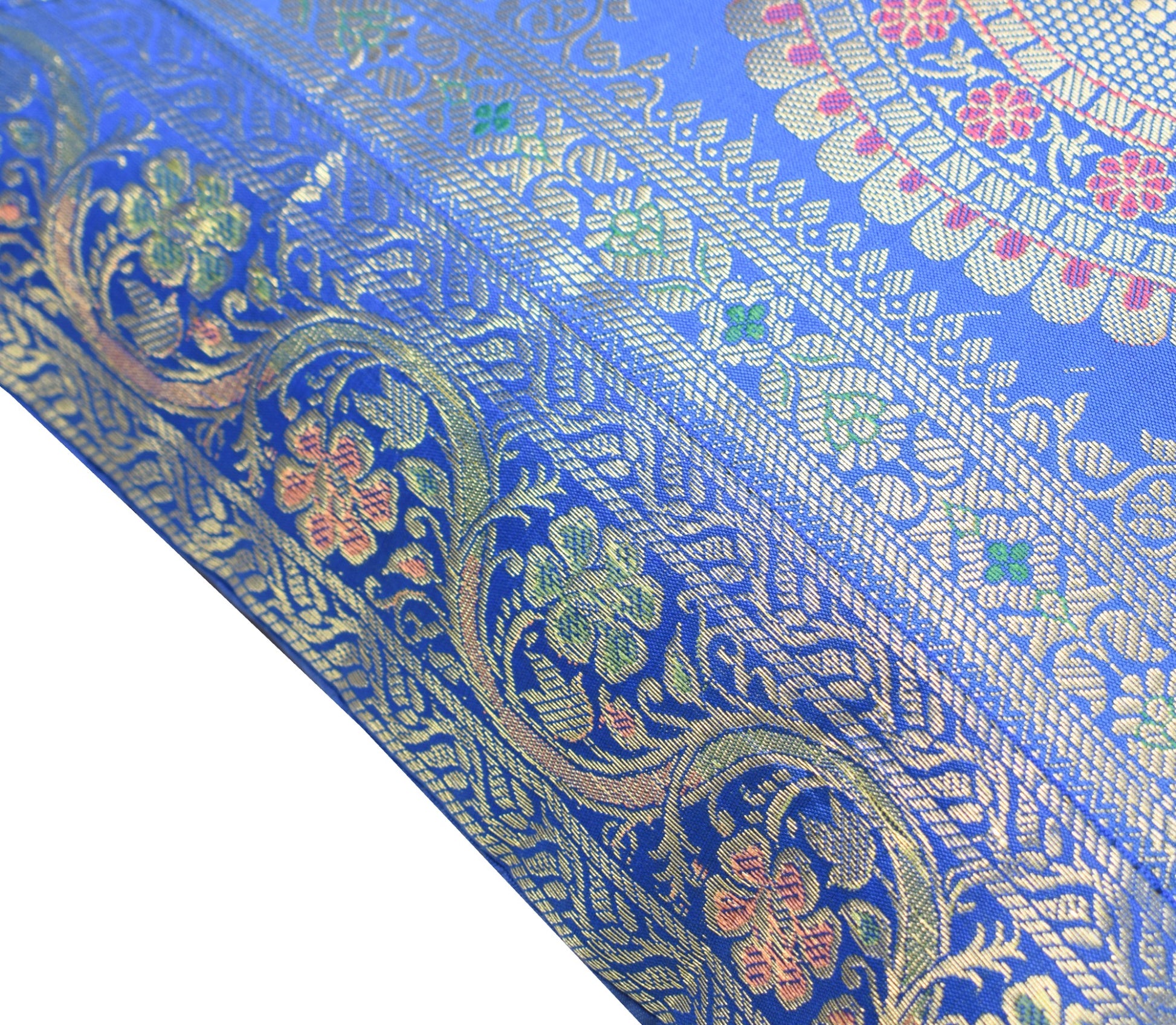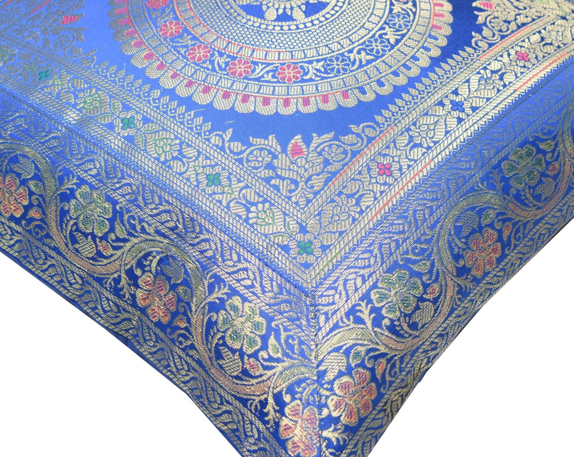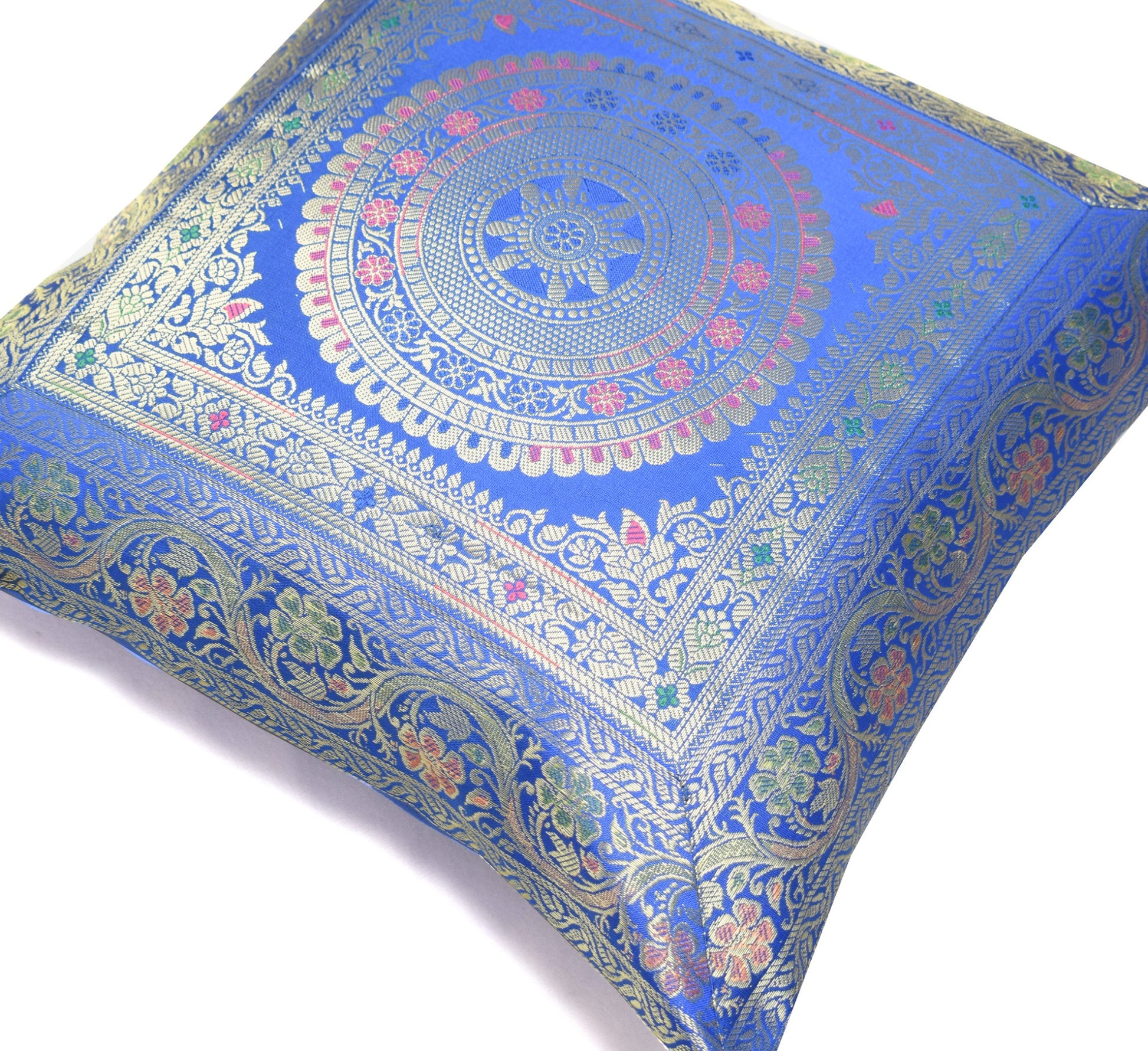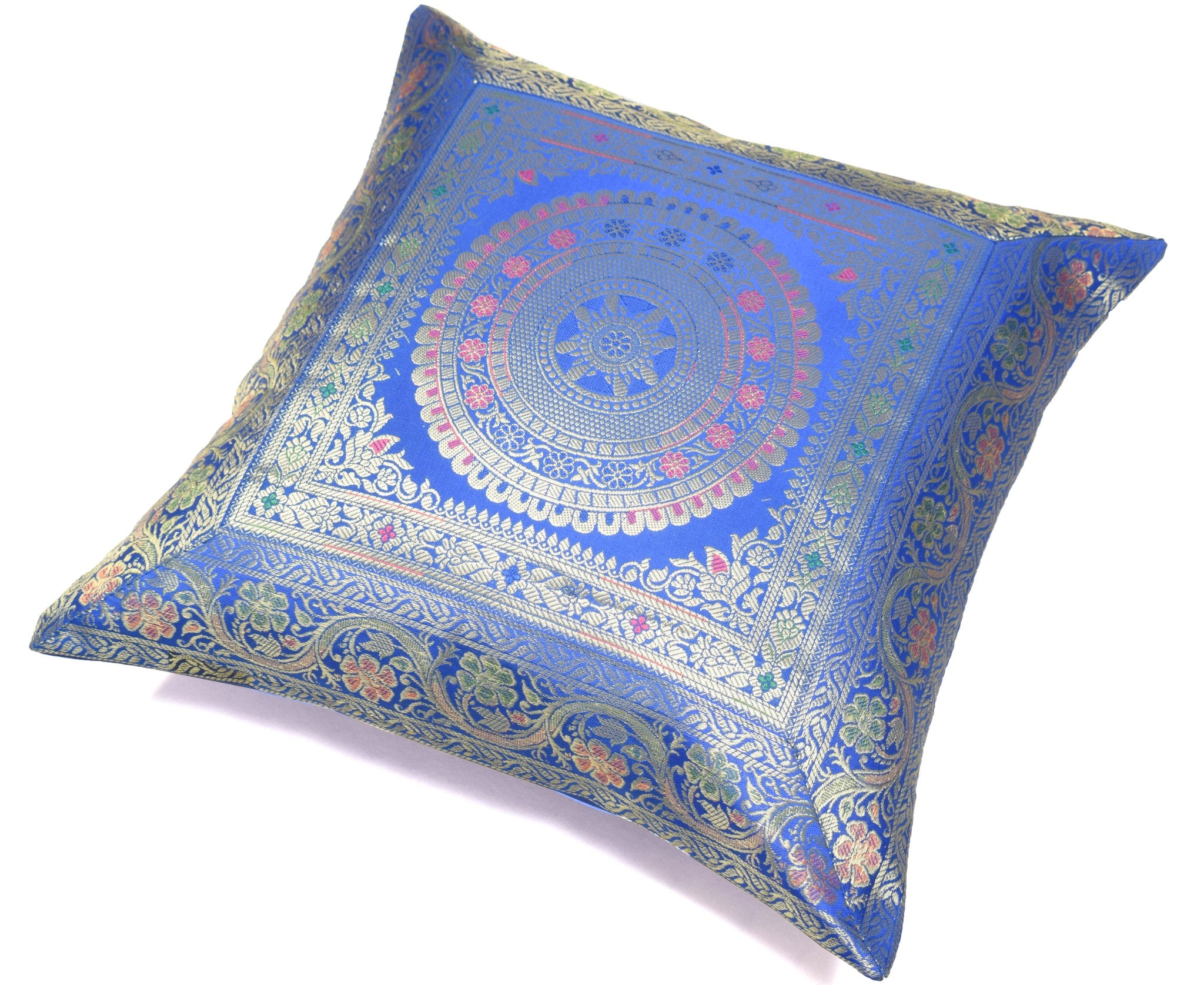 Banarasi Vastra Presents Indian Art Silk Woven Zari Brocade Banarasi Cushion Pillow Cover in Mandala Pattern in the centre Part of the cover with all 4 Side Floral Zari Woven Border. this Cover comes with Matching color Back lining fabric with Hidden Zip which allow you to insert the Cushion Pillow. The base color of the cover is Blue.