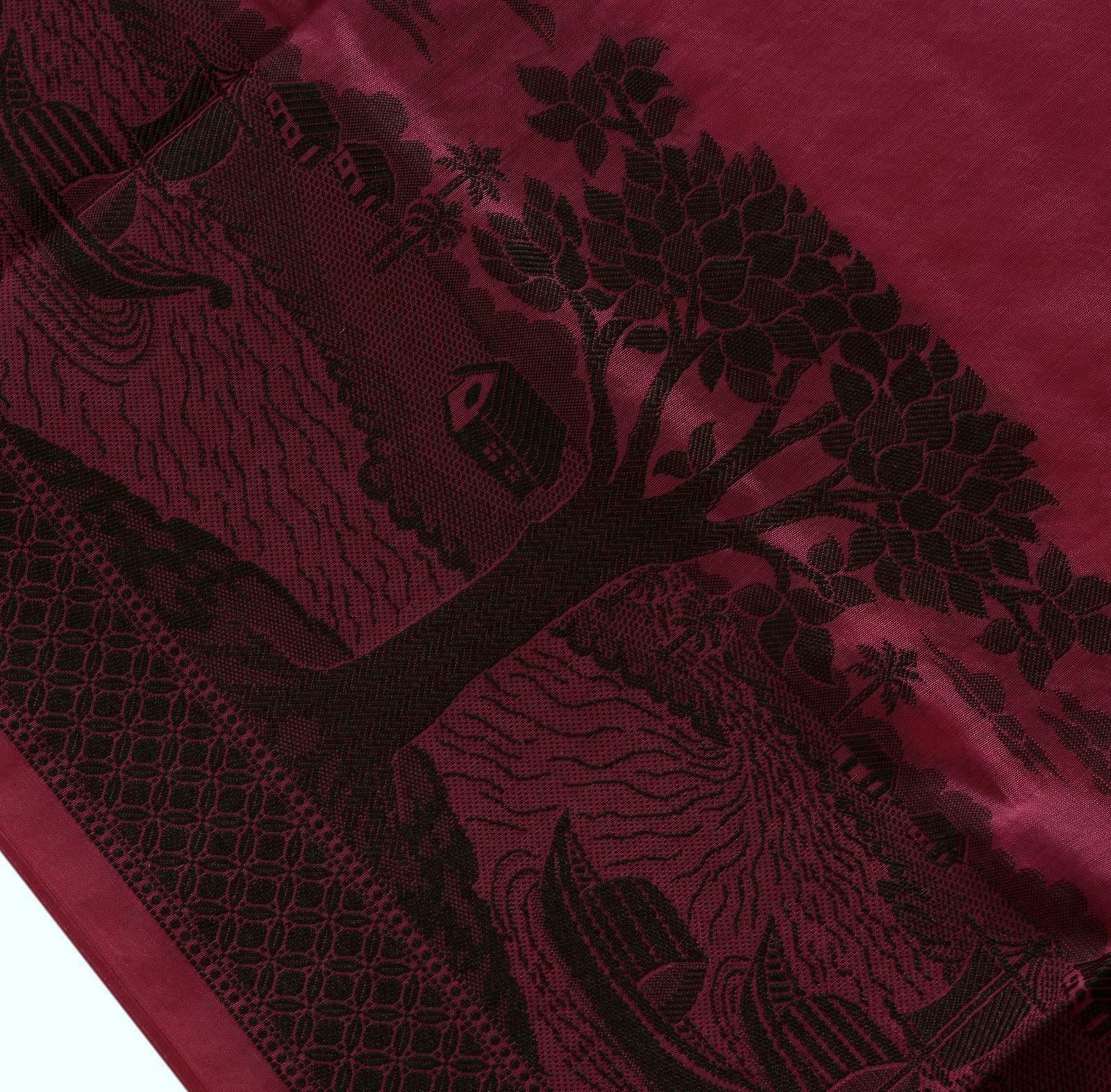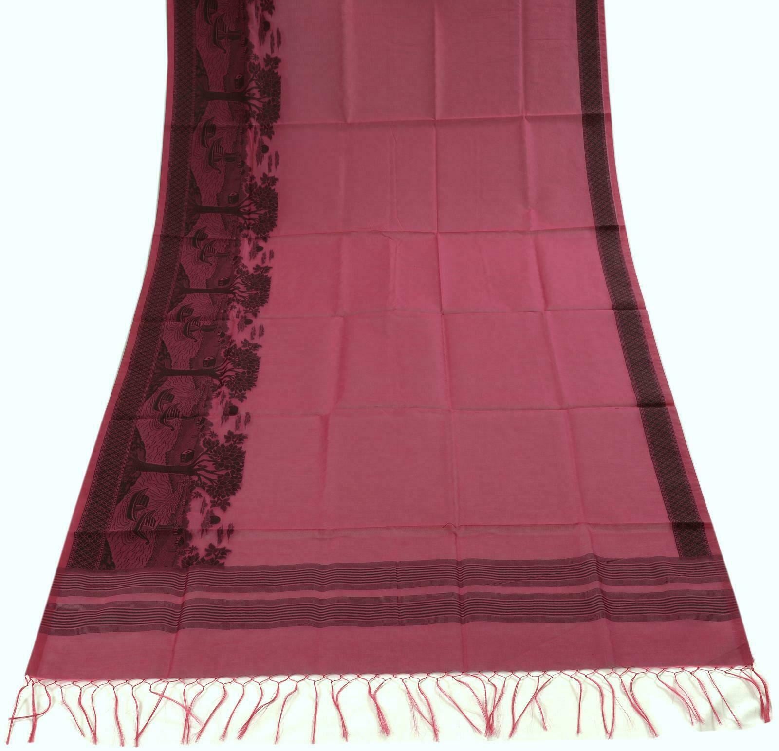 Woven Cotton Blend Indian Long Stole Banaras Ganga Ghat Dupatta Deep Deep Pink