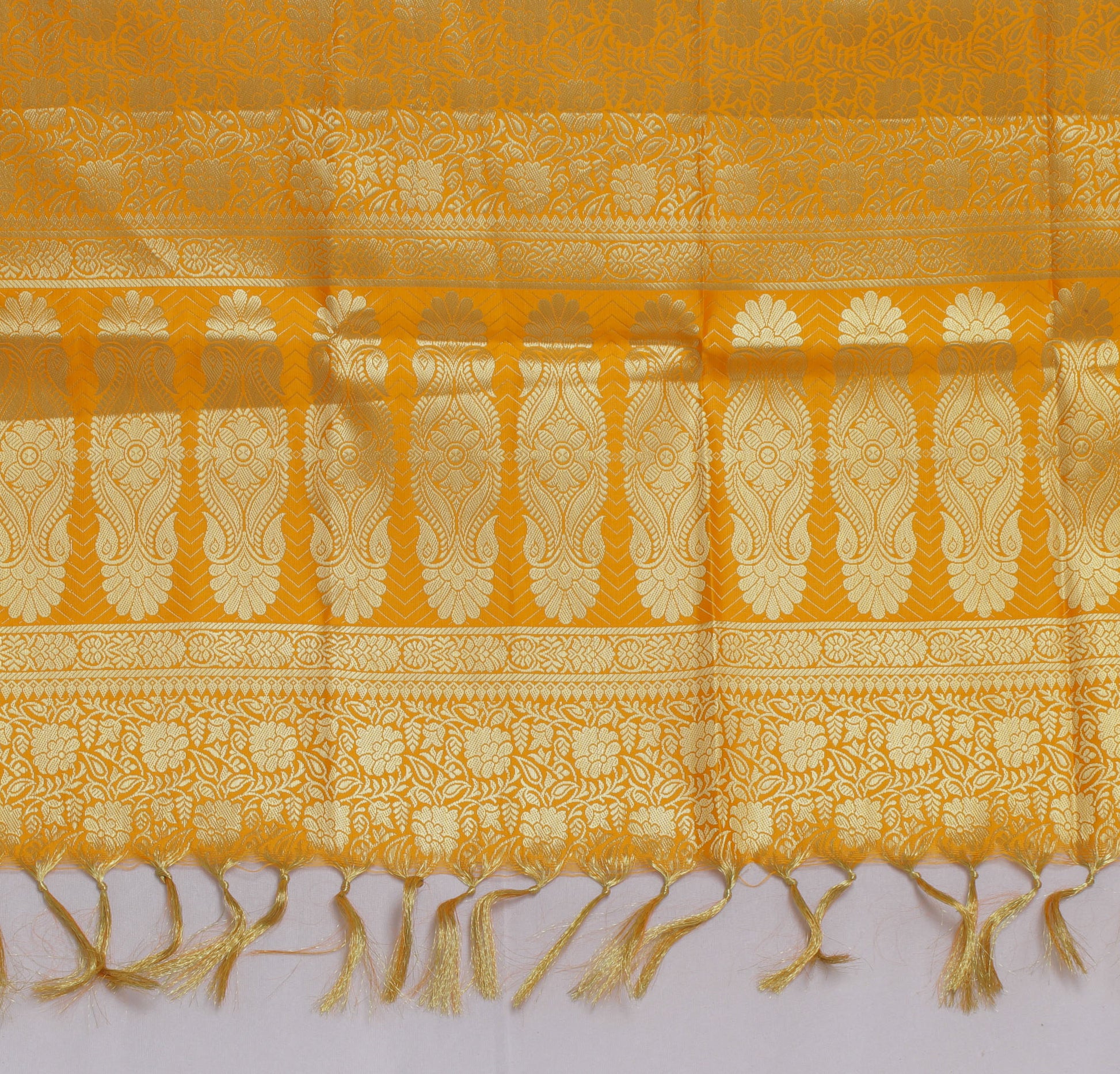 Yellow Banarasi Dupatta Indian Art Silk Woven Zari Brocade Long Stole Scarves